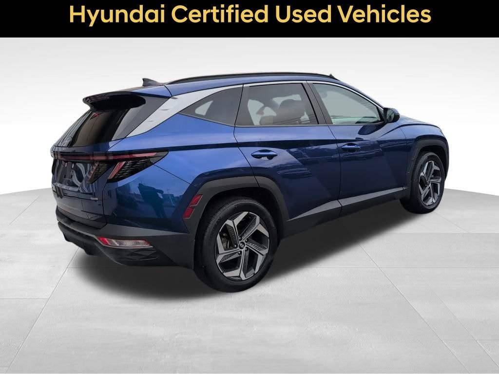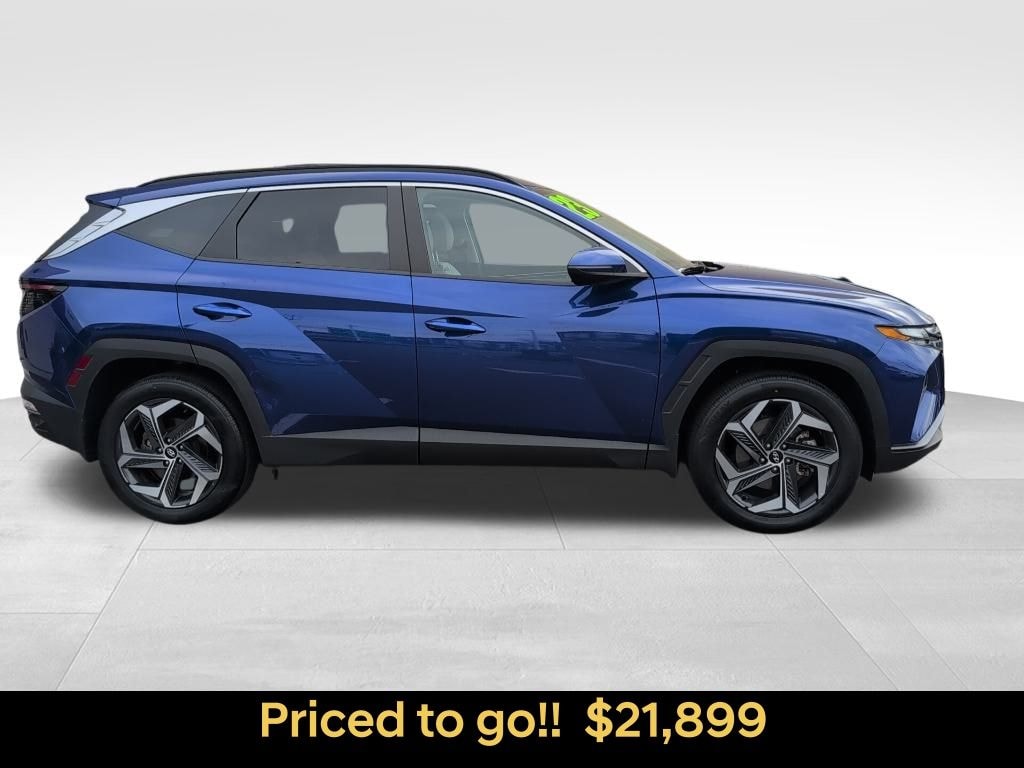 CARFAX One-Owner. Clean CARFAX. Certified. Intense Blue 2023 Hyundai Tucson SEL AWD 8-Speed Automatic with SHIFTRONIC 2.5L I4 DGI DOHC 16V LEV3-ULEV70 187hp AWD, 10.25" Digital Instrument Cluster, Auto-Dimming Interior Mirror w/Homelink, Convenience Package, Dual Automatic Temperature Control, H-Tex Seat Trim, Leather-Wrapped Shift Knob, Leather-Wrapped Steering Wheel, LED Interior Lights (Room, Map), Option Group 02, Power Sunroof, Ultrasonic Rear Occupant Alert, Wheels: 19" x 7.5J" Machine-Face Finish Alloy. ***CERTIFIED PRE-OWNED*** MARKED DOWN FOR OUR CERTIFIED PRE-OWNED INVENTORY CLEARANCE !! Check out this HYUNDAI CERTIFIED PRE-OWNED vehicle with tons of great features. Every Certified Pre-Owned car from Liberty Hyundai comes with the full balance of the 10yr/100000mi powertrain limited warranty and your choice of the balance of the 5yr/60000mi or a 10yr/100000 new vehicle limited warranty (See dealer for details). Low APR financing is also available. It also comes with the peace of mind of a 150 point inspection, 24/7 roadside assistance, rental car benefits, and a free CARFAX history report. OUR PRICES INCLUDE CERTIFICATION AND RECONDITIONING. Price includes all costs to be paid by the consumer except for licensing, registration, taxes, and $799 Doc fee. Although every reasonable effort has been made to ensure the accuracy of the information contained on this site, absolute accuracy cannot be guaranteed and is the responsibility of the purchaser to verify packaging, equipment, etc. This site, and all information and materials appearing on it, are presented to the user "as is" without warranty of any kind, either express or implied. All vehicles are subject to prior sale. See dealer for details.